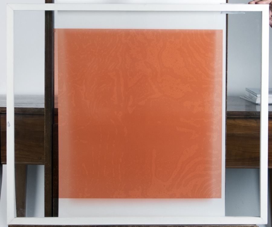 Nikolaus Koliusis 1953 To support (Teil 11) Farbige Kunststofffolie zwischen Glasscheiben im Holzrahmen; H 66 cm, B 77 cm