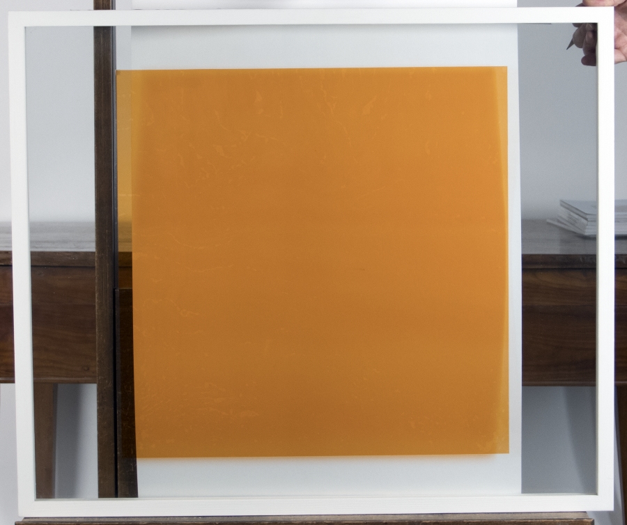 Nikolaus Koliusis 1953 To support (Teil 1) Farbige Kunststofffolie zwischen Glasscheiben im Holzrahmen; H 66 cm, B 77 cm