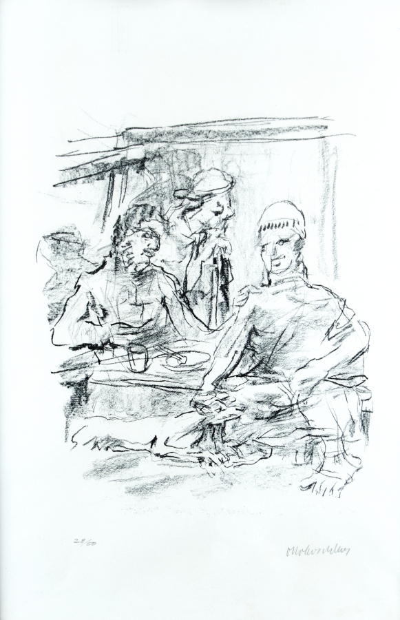 Oskar Kokoschka 1886 Pöchlarn – 1980 Montreux Figurenkomposition mit Hund Lithografie auf Papier; H 330 mm, B 275 mm; signiert u. r. “OKokoschka“; nummeriert u. l. “28/50“