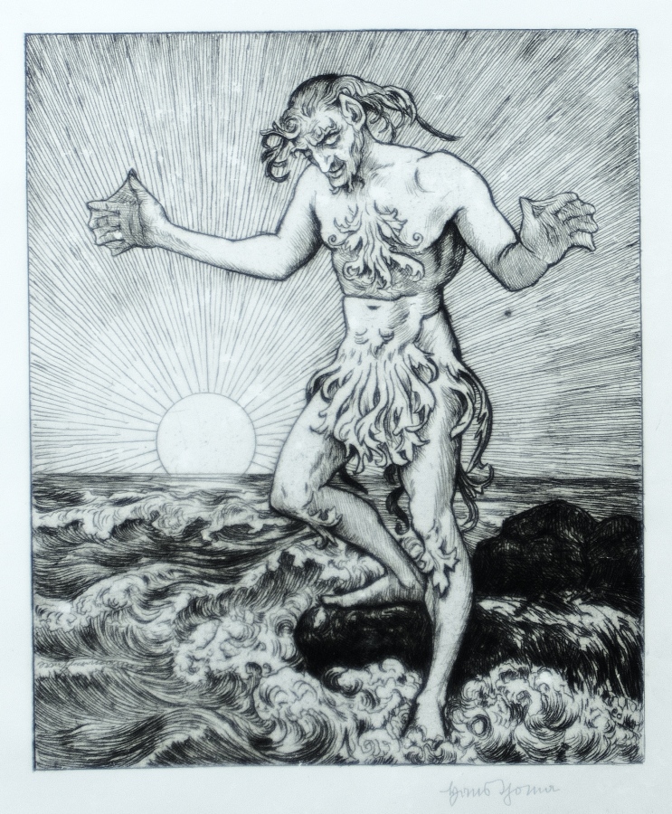 Hans Thoma 1839 Bernau – 1924 Karlsruhe Wassermann Radierung auf Papier; H 295 mm, B 240 mm; signiert u. r. “Hans Thoma“