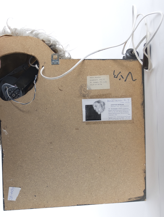 Fell mit Elektromotor über oxidiertem Spiegel und Holzplatte, 1977; H 47 cm, B 48 cm, T 17 cm; unten signiert und mit dem Künstlerstempel "Macht eine neue Welt"; Aufkleber des Künstlers mit Bezeichnung; Exemplar 20/25; voll funktionsfähig