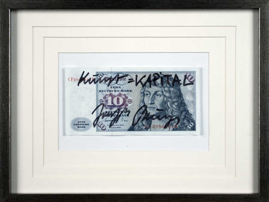 10 DM note; H 65 mm, W 129 mm; inscribed and signed by the artist “Kunst-Kapital Joseph