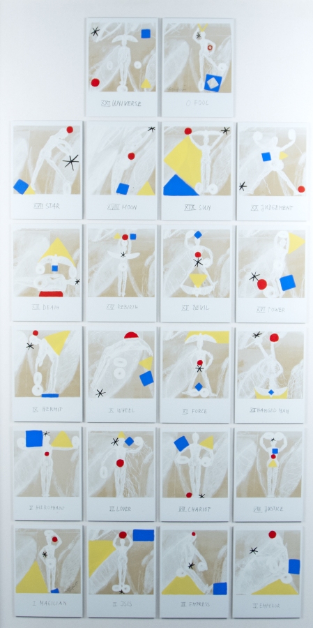 22 silkscreens on cardboard, framed; H 152 cm, W 79 cm (frame dimensions); one card signed