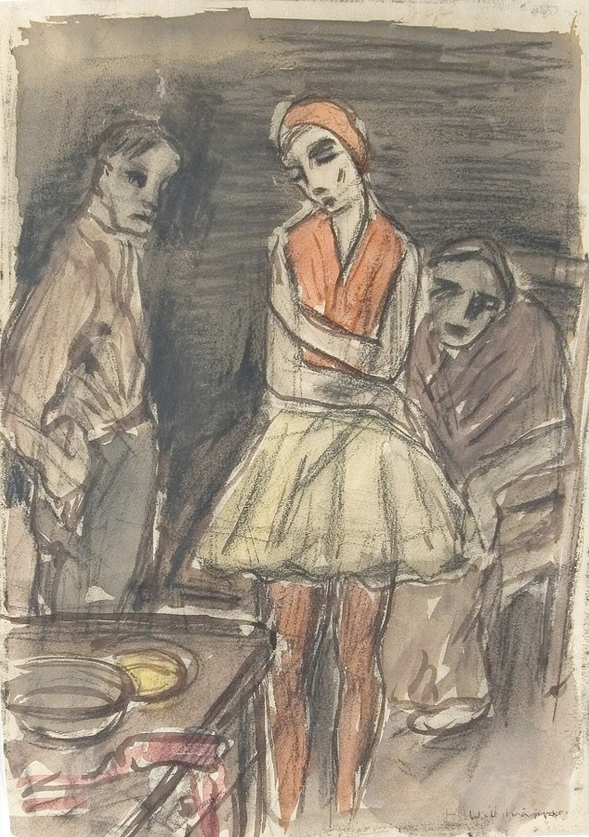 Will Küpper 1893 Brühl bei Köln – 1972 Düsseldorf Studium an den Akademien in Düsseldorf und Köln; unternahm Reisen durch Deutschland und Holland. Tänzerin Aquarell und Pastell auf Papier, um 1925; H 296 mm, B 212 mm; signiert in Bleistift u. r. “Will Küpper“, darüber wahrscheinlich von Käte Küpper in Tintenstift.