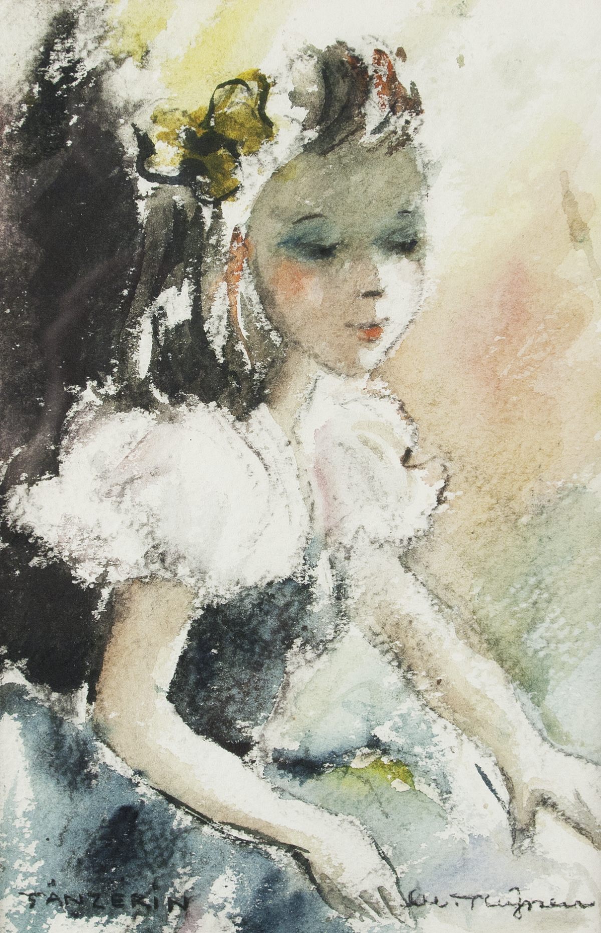 Aquarellist der Mitte des 20. Jh. Tänzerin Aquarell über Kohle auf Papier; H 263 mm, B 178 mm (Passepartoutmaß); u. r. schwer leserlich bezeichnet “W. Thyssen“ (?); u. l. betitelt.