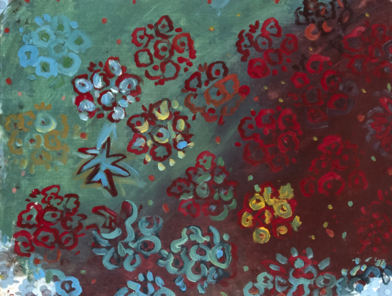 Horst Gläsker 1949 Herford 1973-79 Studium der Malerei an der Düsseldorfer Kunstakademie; 1988-91 Gastprofessur an der Kunstakademie Münster; 1995-97 Gastprofessur an der Hochschule für Bildende Künste Braunschweig; 1998-2004 Professur an der Kunsthochschule Kassel; zahlreiche Ausstellungen im In- und Ausland; lebt und arbeitet in Düsseldorf. Übermalung Öl auf Gewebe; H 39 cm, B 50 cm; verso signiert und datiert “Gläsker 81“