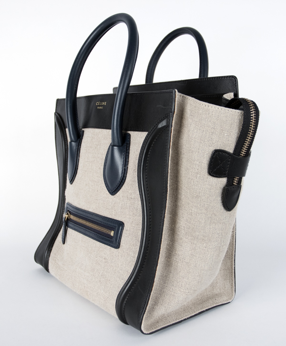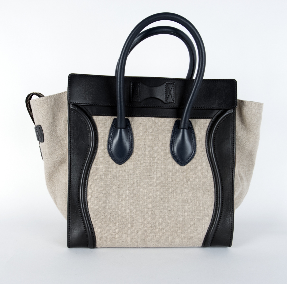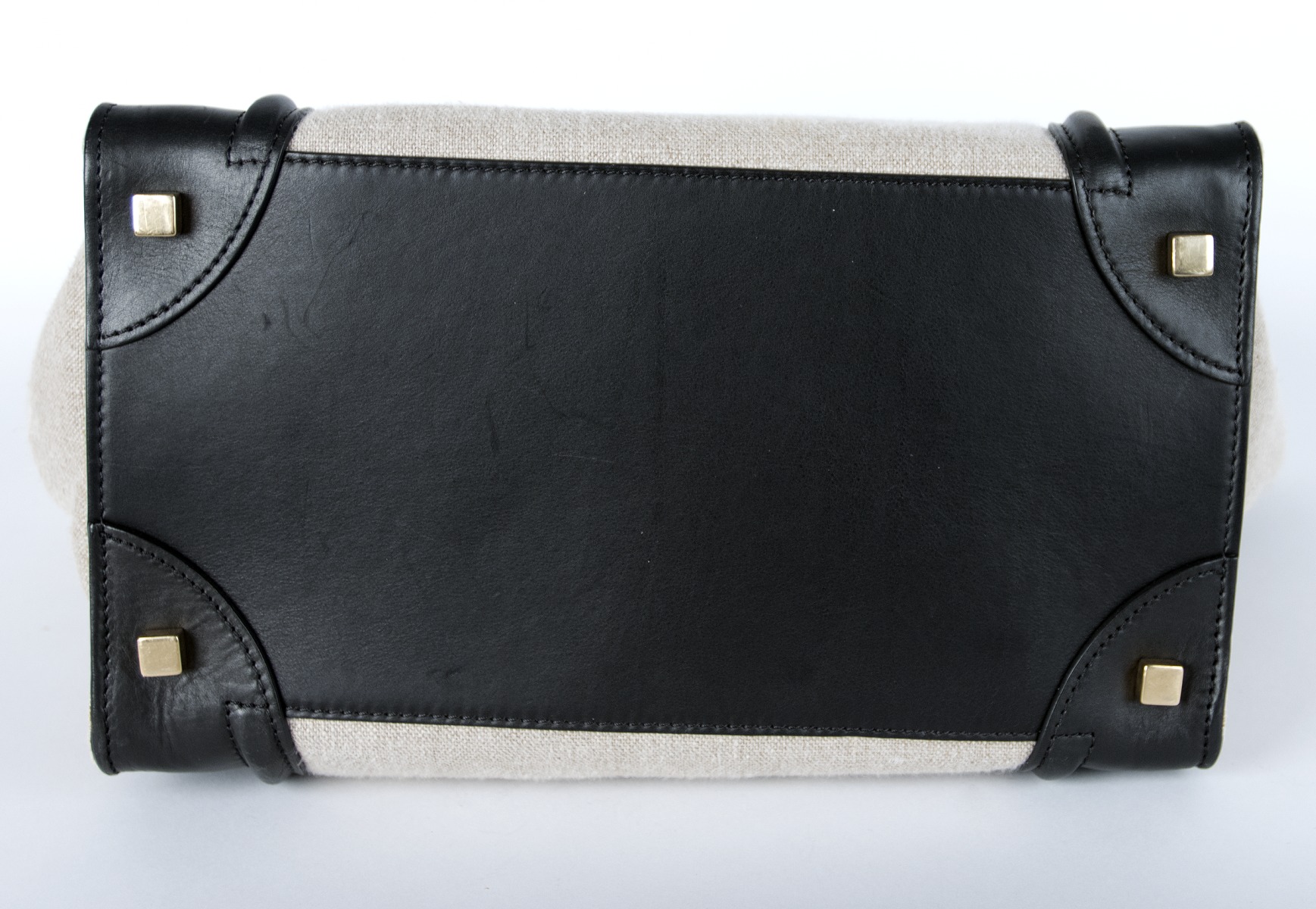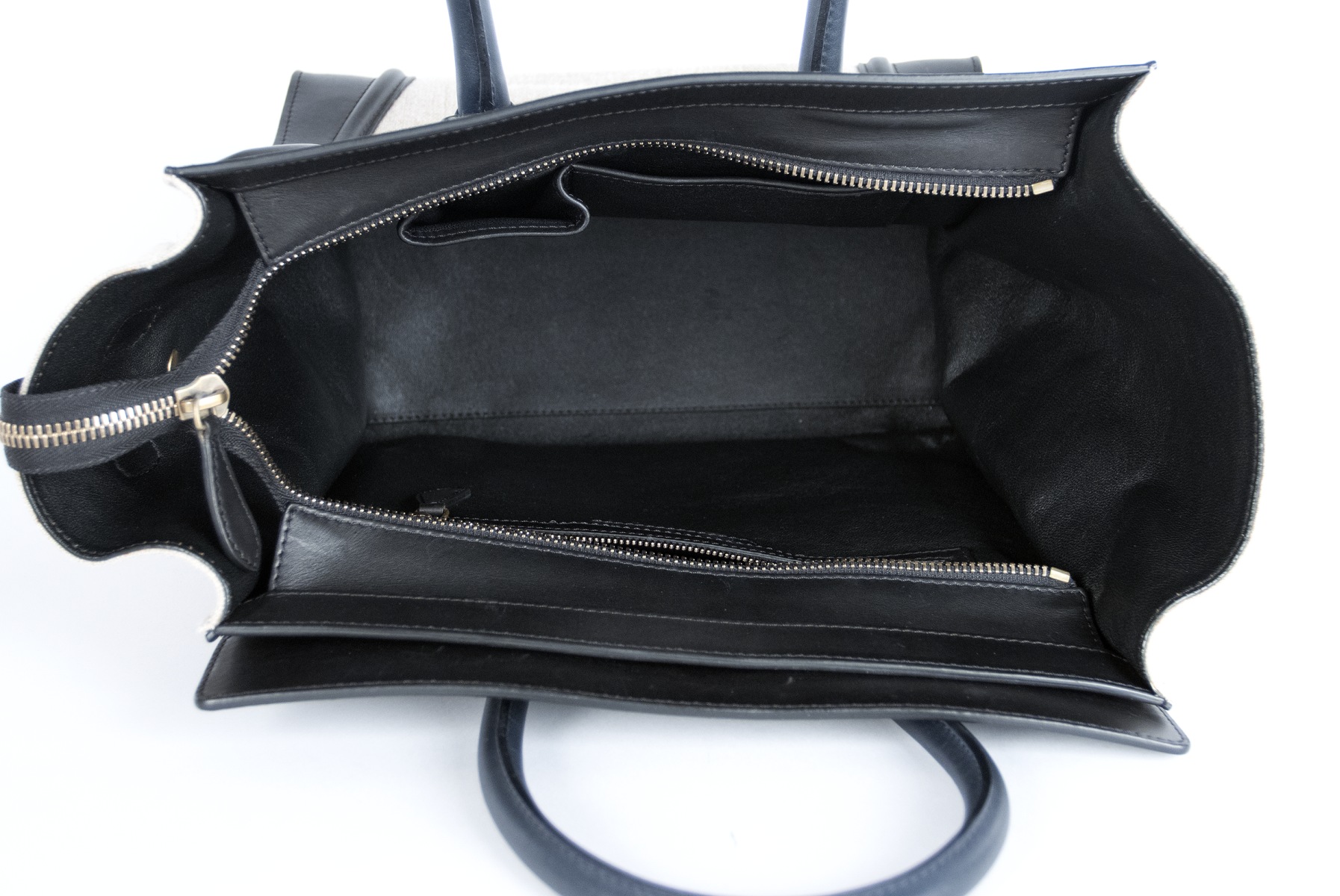 Céline Handtasche Tote “Luggage“ MM Canvas, glattes schwarzes und petrolblaues Leder mit goldfarbigen Metallbeschlägen; H 30 cm, B 30 cm, T 16 cm; beiliegend originaler Staubbeutel