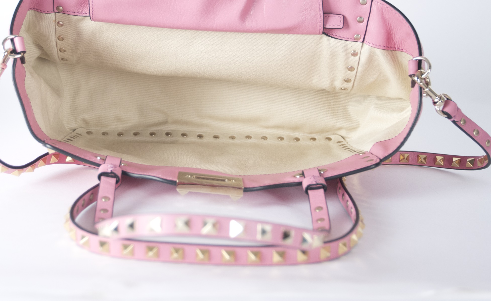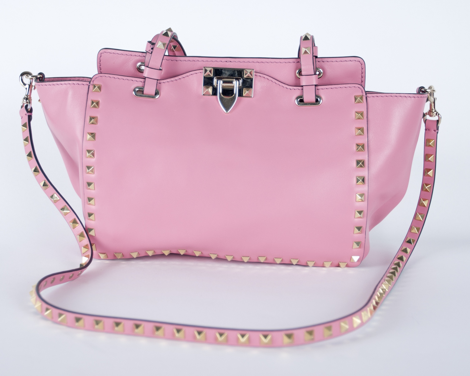 Garavani Valentino Rockstud Kalbsleder mit goldfarbenen Messingnieten und Schulterriemen; H 20 cm, B 26 cm, T 10 cm; beiliegend originaler Staubbeutel