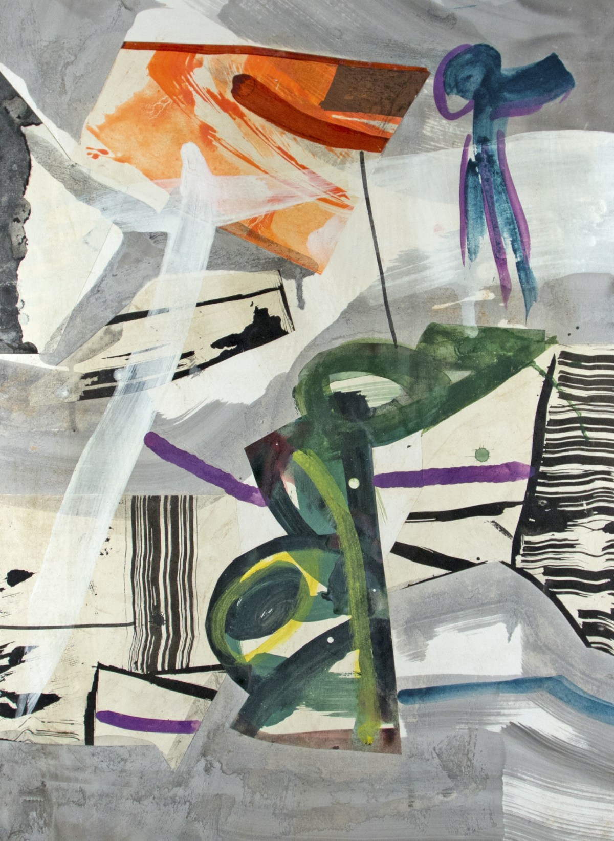 Veit Hofmann 1944 Dresden Studium an der AK Dresden; Ausstellungen u. a. 2015 in der Städt. Galerie Dresden und 2011 im Museo National Brasilia/Brasilien. Ohne Titel Gouache, Aquarell und Collage auf Papier; H 777 mm, B 570 mm (Passepartoutmaß); u. l. mit dem Signum