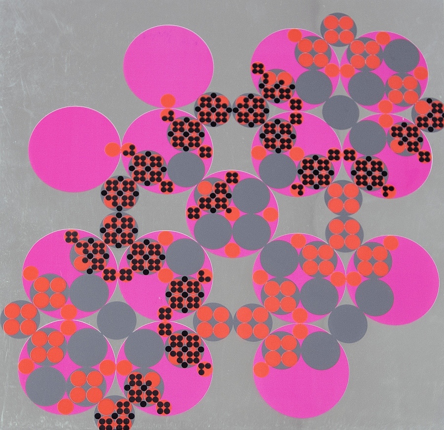 Silkscreen on mirrored PVC film; H 500 mm, W 500 mm; numbered and signed lower center