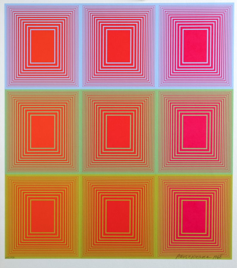 Siebdruck auf Papier; H 343 mm, B 303 mm; signiert und datiert "Anuszkiewicz 1968";