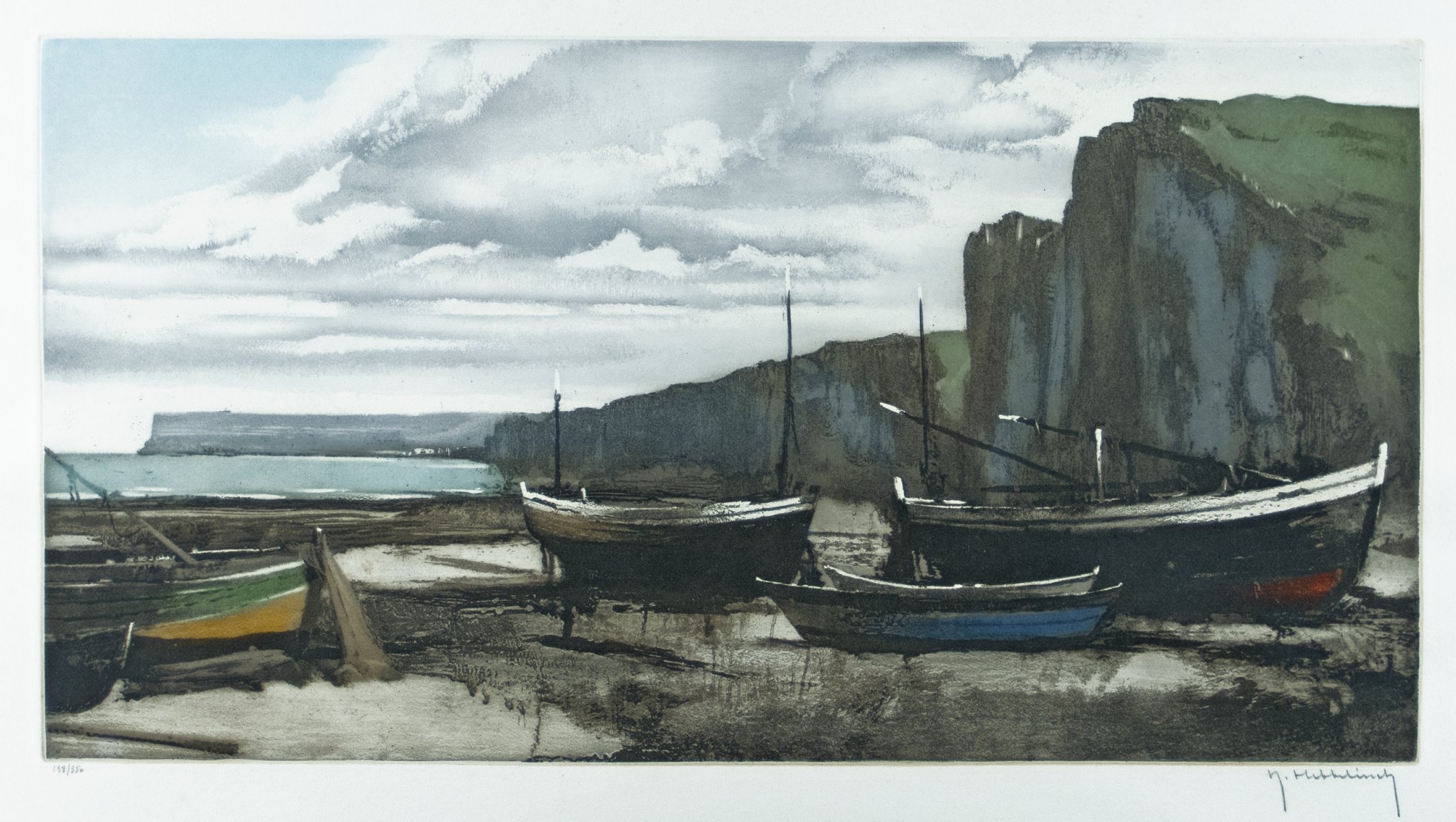 Roger Hebbelinck 1912 – 1987 Am aermelkanal Farbradierung auf Papier; H 268 mm, B 508 mm; signiert u. r.; nummeriert u. l. “138/350“