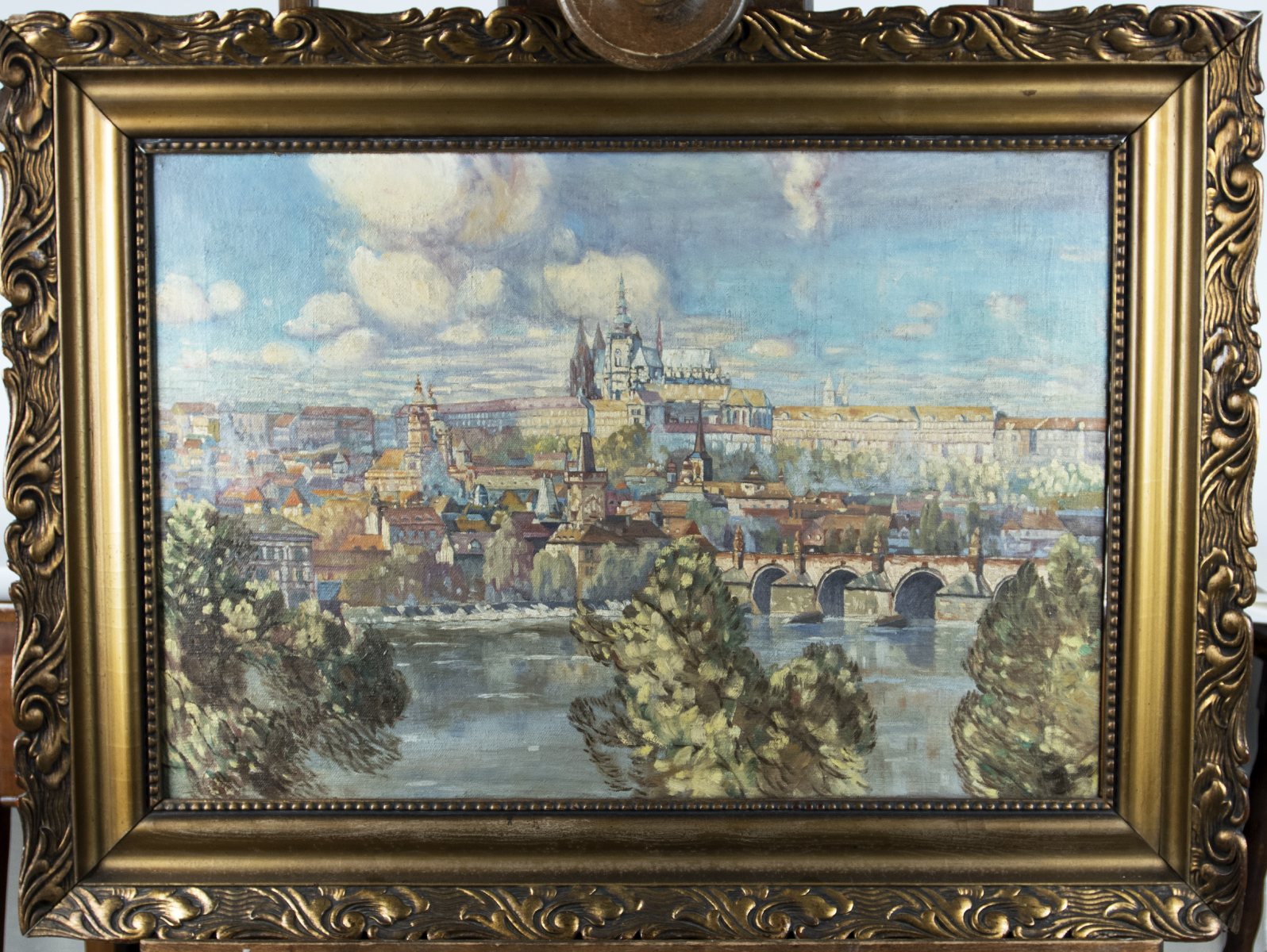 Ferdinand Engelmueller Umkreis Blick auf Prag oel auf Lwd; H 48 cm, B 70 cm