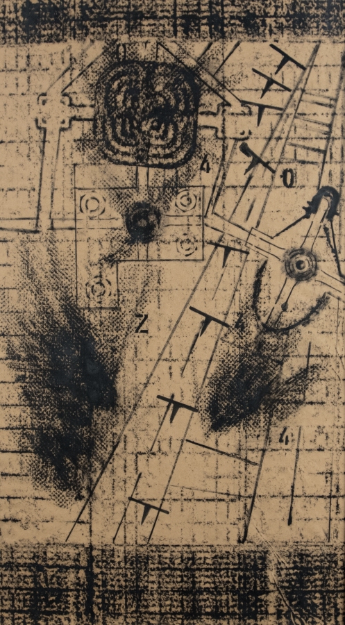 Claude Sui-Bellois 1960 Extermination Nr. III Kohlezeichnung auf Papier; H 700 mm, B 400 mm; verso ligiert monogrammiert