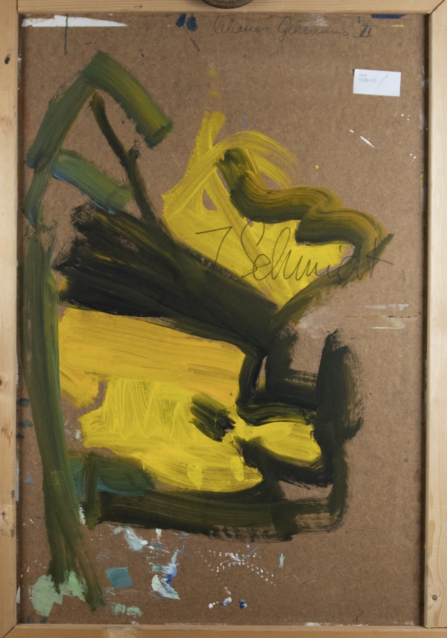 Ingrid Schmidt Blaues Geheimnis II oel auf Lwd, aufgezogen auf Pressspanplatte; H 100 cm, B 70 cm; verso signiert und bezeichnet