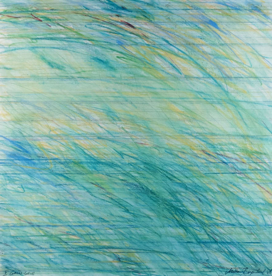 H. U. Mueller-Bryanlund Gruen-Gelb V Farbige Kreiden auf Papier, 1988; H 806 mm, B 700 mm; signiert, datiert und bezeichnet
